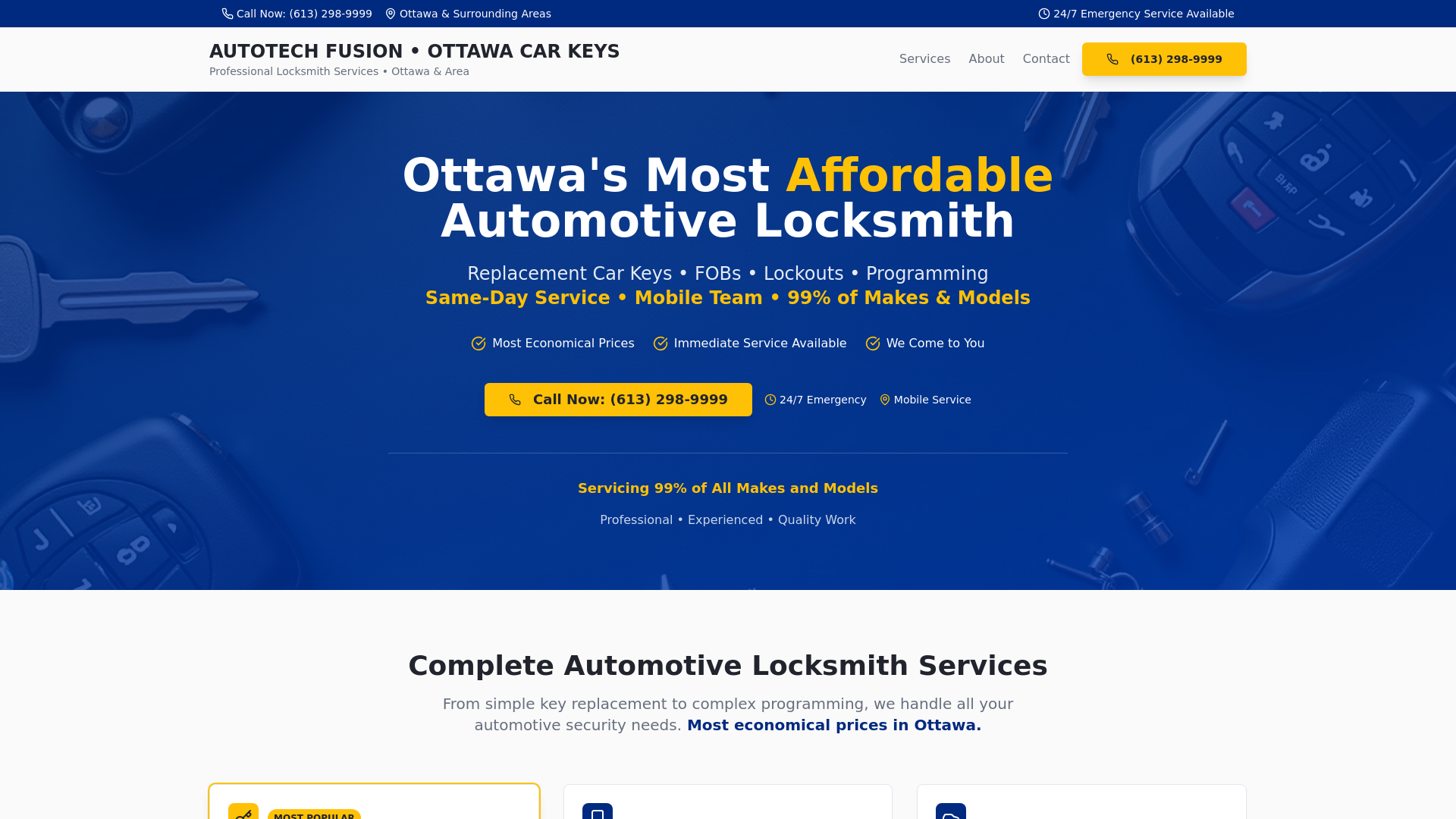 AutoTech Fusion Ottawa Car Keys provides professional and affordable automotive locksmith services in Ottawa and surrounding areas. They offer replacement car keys, FOBs, lockout assistance, programming, and more for 99% of makes and models, with same-day and 24/7 emergency service available.